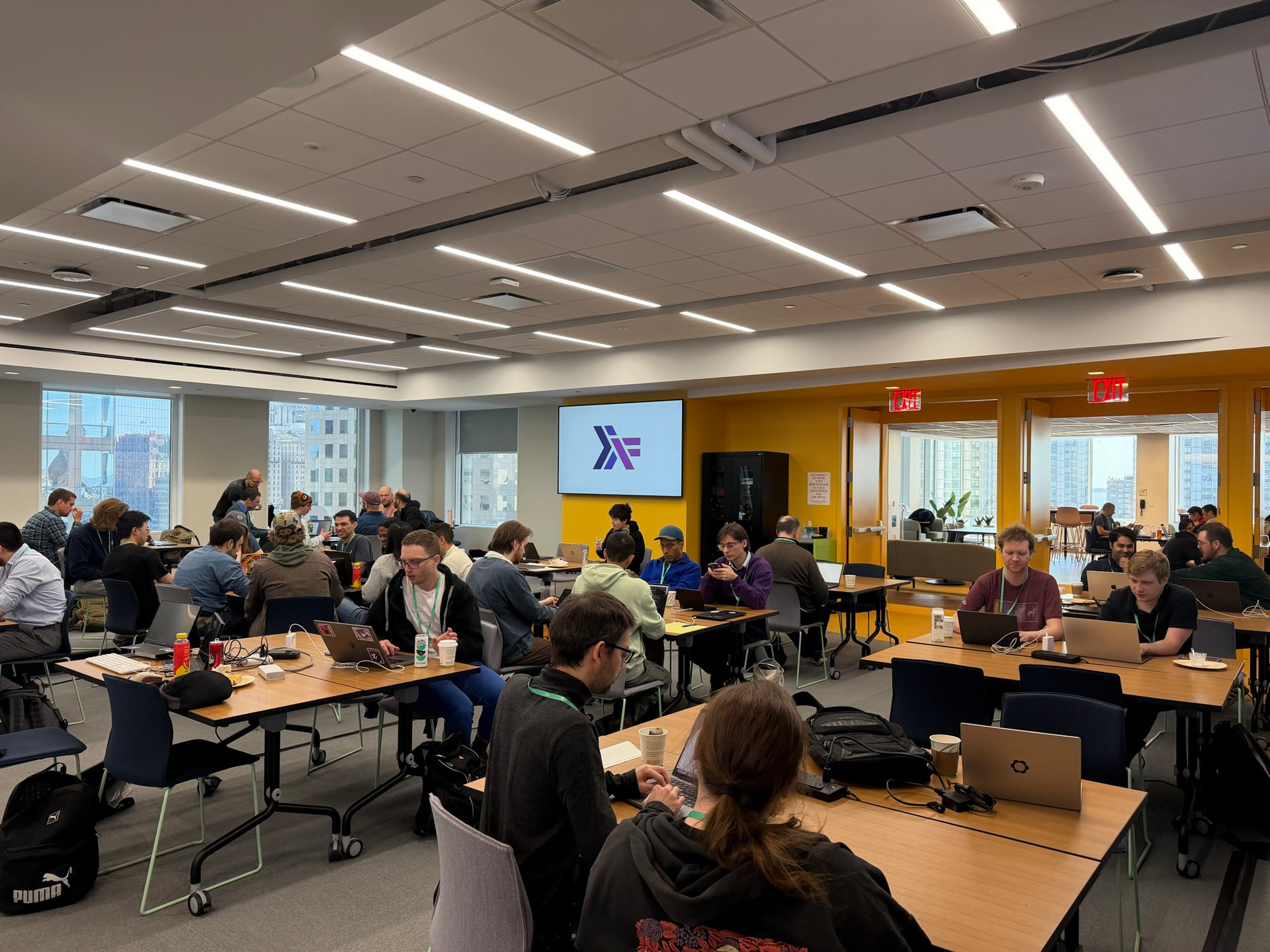 There were some healthy groups of folks working on projects togeher. GHC, Hackage, Transformers-MTL, Data-Haskell, folks working on Zero-Knowledge Proofs, among others. @sclv did a great job helping folks get acquainted with the Hackage codebase, thank you!